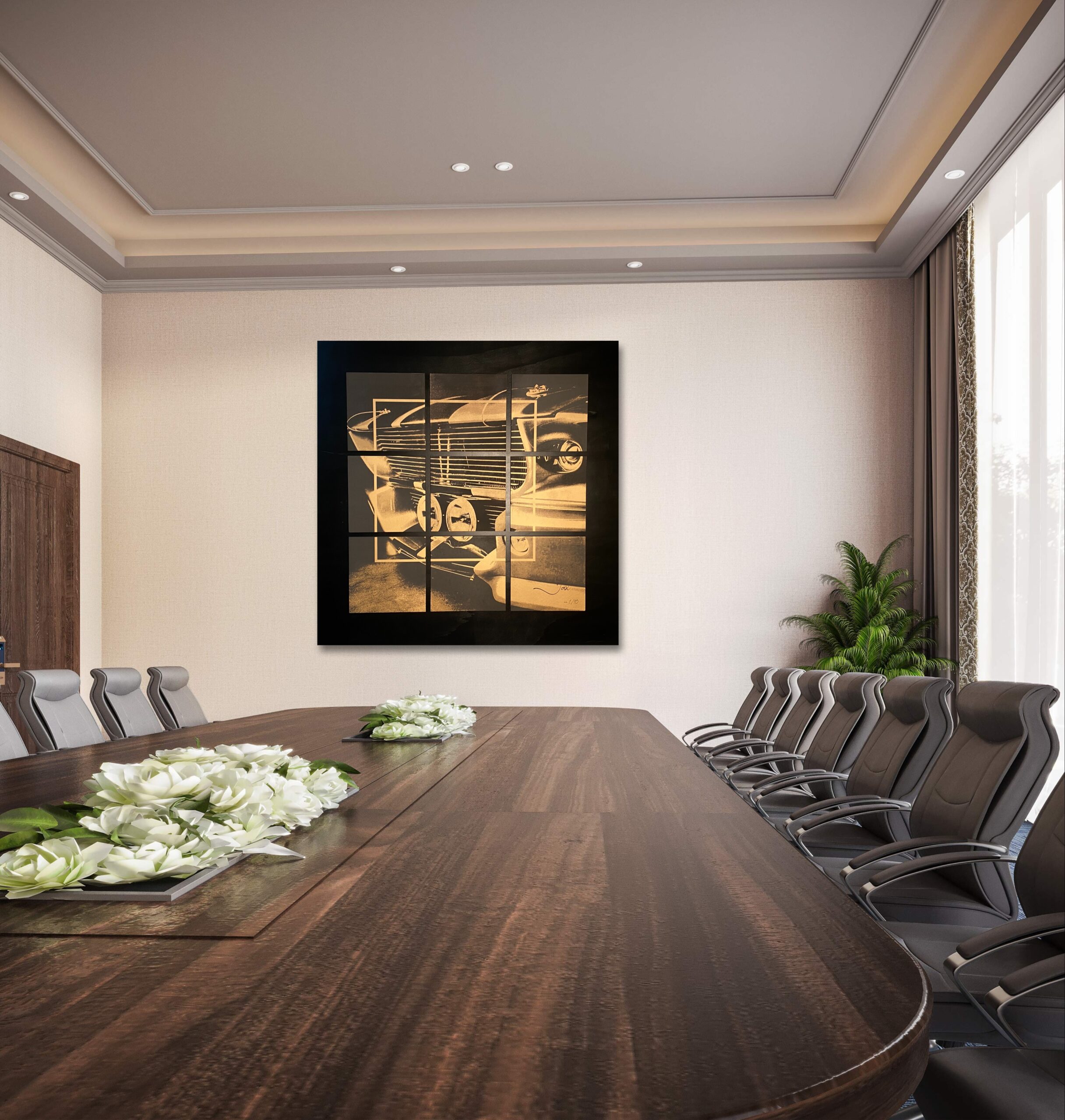 “Eleanor” is meer dan een kunstwerk; het is een symbool van kracht, elegantie en passie. Of je nu een autoliefhebber bent of simpelweg houdt van exclusieve kunstobjecten, dit werk biedt een unieke kans om beide werelden te combineren. Het past perfect in een luxe interieur, een stijlvolle kantoorruimte of een galerie.