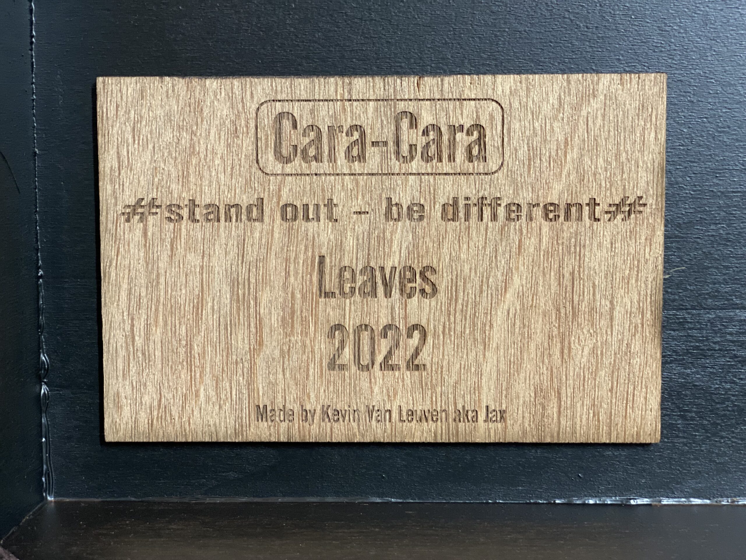 - Materialen: Multiplex, zwarte MDF, lasergravure, matte vernis