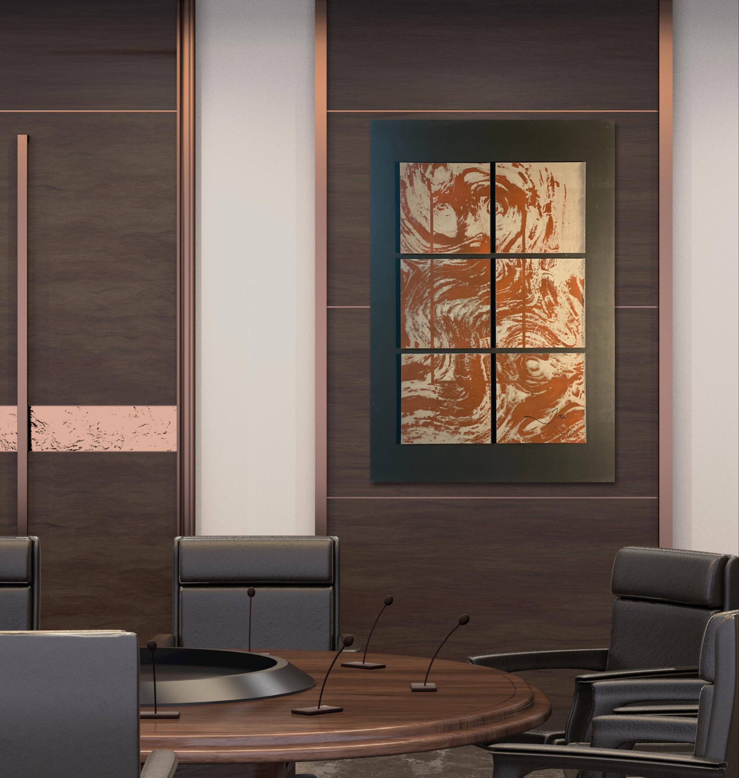 “Wood You” is een verbluffend abstract kunstwerk dat geïnspireerd is op de intrigerende houtstructuur in rijke bruintinten. Dit kunstwerk weet de essentie van hout vast te leggen door middel van een unieke en eigentijdse benadering.