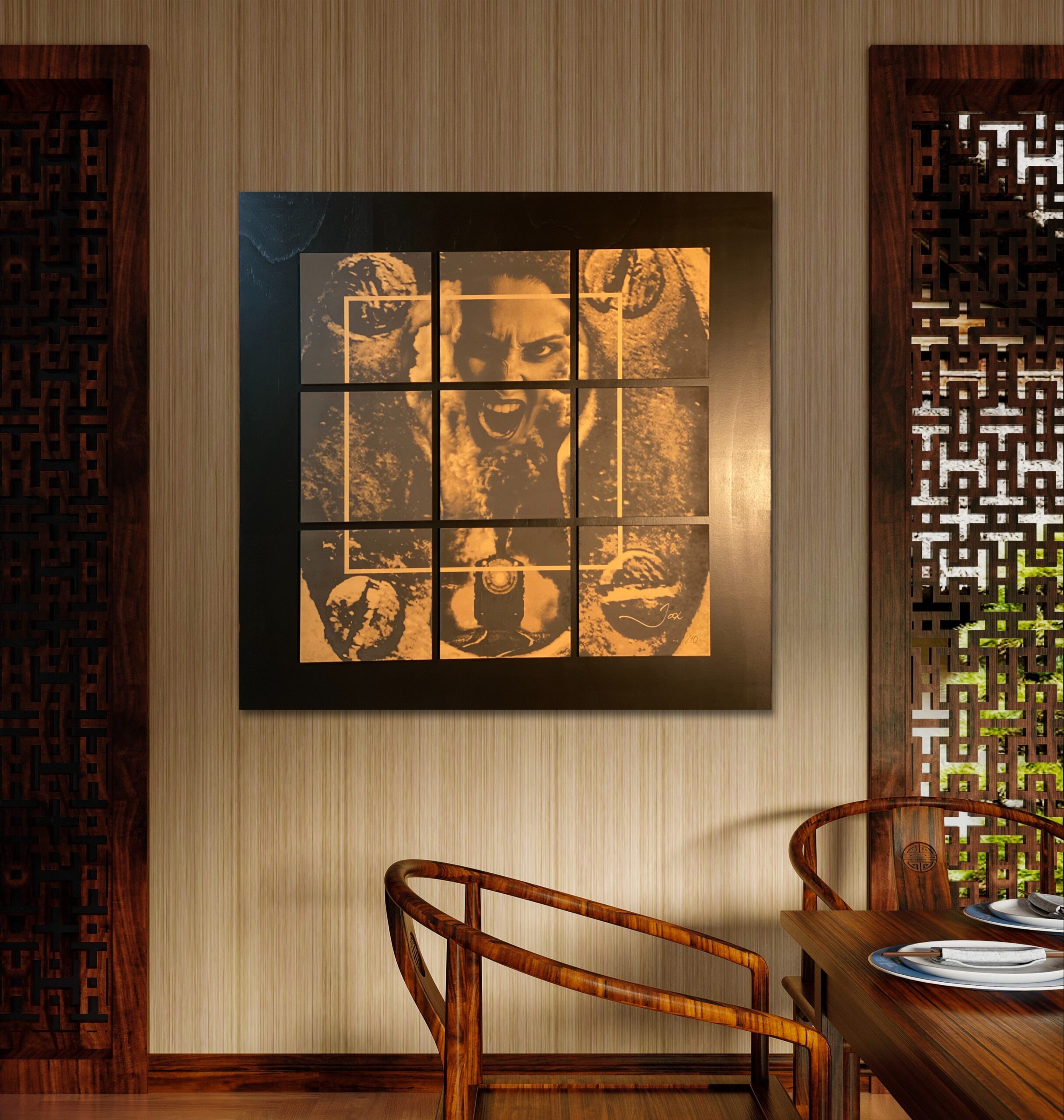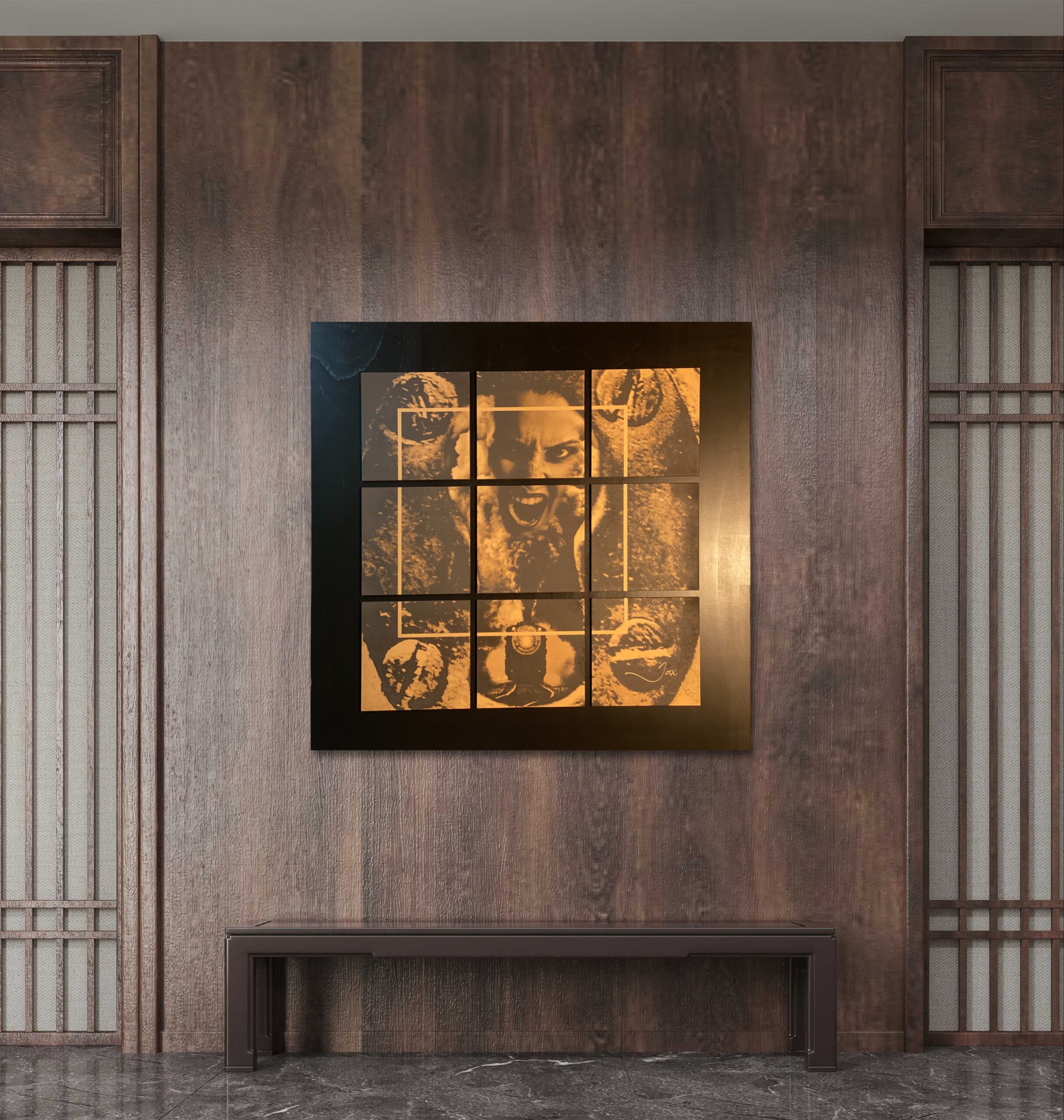 De combinatie van koperpoeder op MDF en een tableau van zwart gelakte multiplex zorgt voor een luxueuze uitstraling die perfect past in moderne en klassieke interieurs. Het bijgevoegde ophangsysteem maakt het eenvoudig om dit kunstwerk een prominente plaats te geven.
