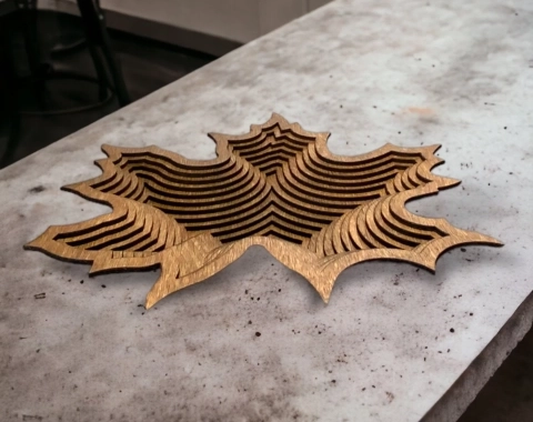 De schaal is vervaardigd uit hoogwaardig lasergesneden hardhout van 4 mm dik en opgebouwd uit meerdere fijne laagjes hout. Dankzij deze gelaagde opbouw ontstaat een moderne en elegante uitstraling die tegelijk minimalistisch en verfijnd is.