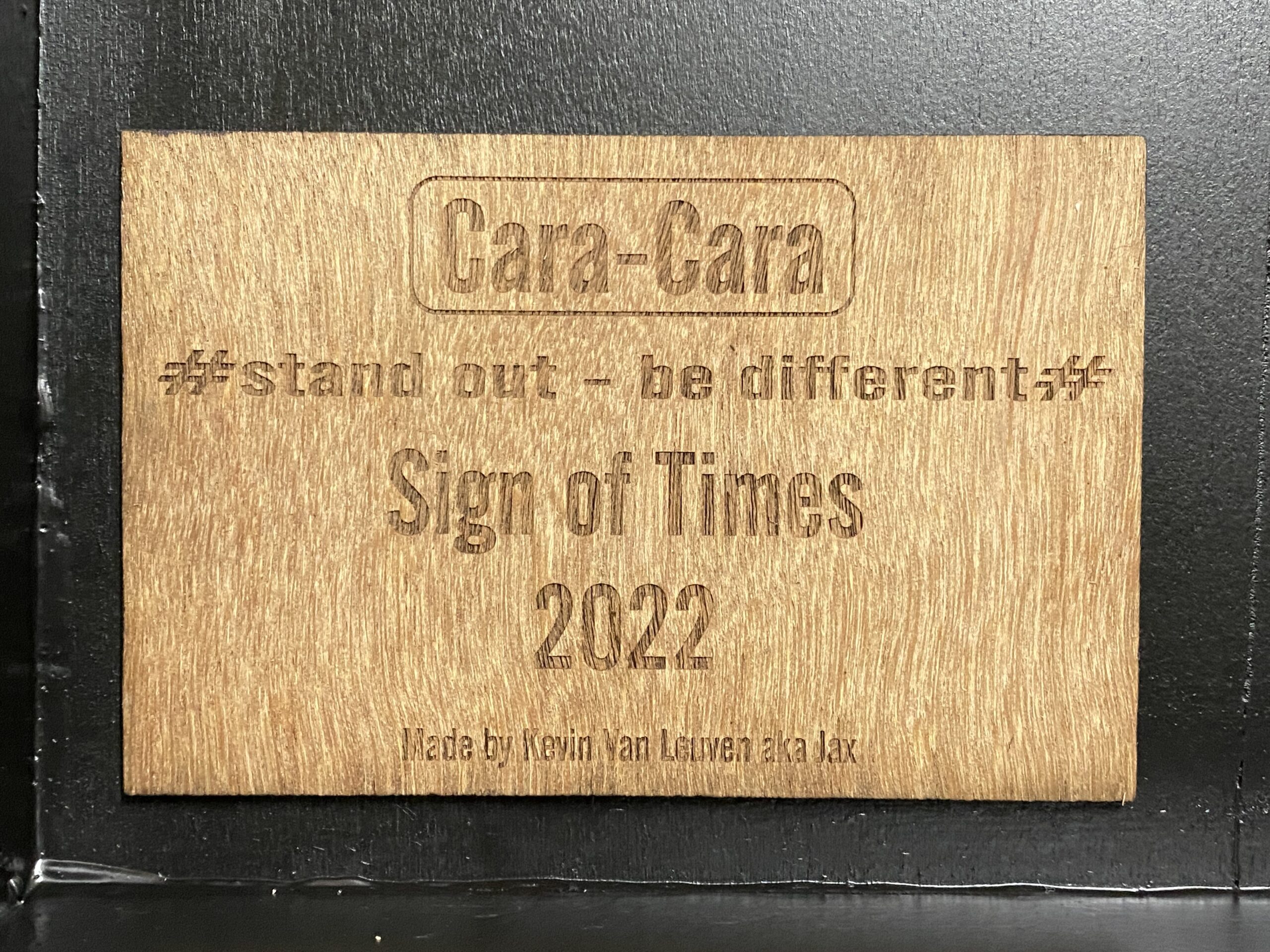 - Object : Lasergravure op koperkleurig (koperpoeder) gelakt zwarte mdf plaatjes 300x300x10 mm, afgewerkt met matte vernis en verlijmd op tableau uit zwart gelakte multiplex 1220x1220x55mm. Inclusief ophangsysteem en bewijs van authenticiteit.
