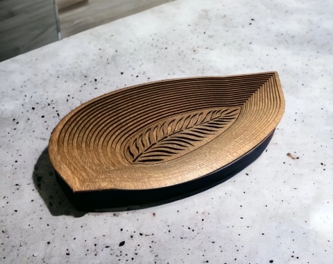 Elke schaal wordt met de grootste zorg vervaardigd uit hoogwaardig lasergesneden hardhout. Het hout wordt laag per laag opgebouwd, waardoor een unieke structuur ontstaat die doet denken aan de fijn vertakte bladeren van een varen. Een subtiele vernislaag accentueert niet alleen de warme natuurlijke tinten van het hout, maar beschermt de schaal ook tegen invloeden van buitenaf. Het resultaat is een duurzaam en stijlvol designobject dat jarenlang meegaat en een tijdloze blikvanger vormt in je interieur.
