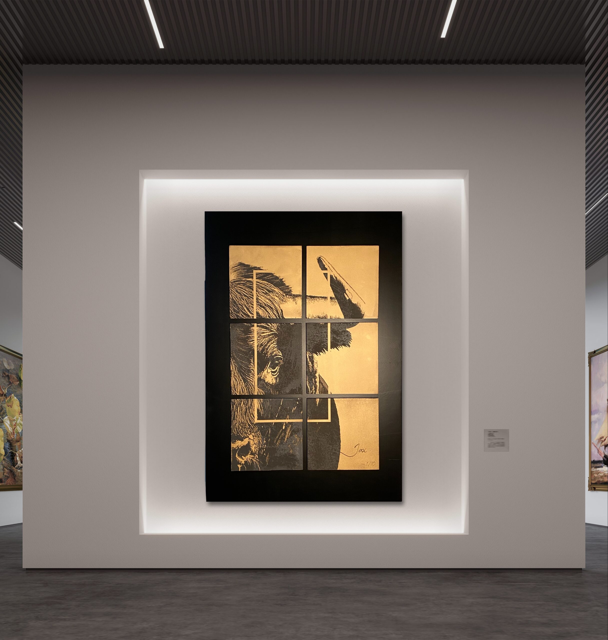 Dit unieke schilderij, ontworpen door de getalenteerde Belgische kunstenaar Jax, is het eerste exemplaar in een exclusieve serie van 10 unieke werken. Elk stuk is zorgvuldig vervaardigd met hoogwaardige materialen zoals medium multiplex en zwarte MDF, en is met de hand gesigneerd door de kunstenaar, wat het tot een waardevol en zeldzaam kunstobject maakt.